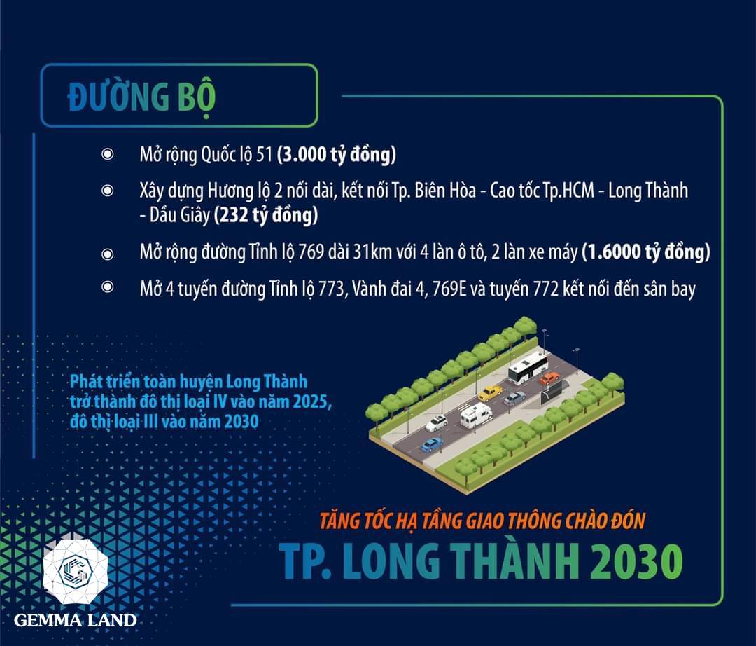 Đường Hương Lộ 2: Nối từ QL51 đến đường cao tốc Long Thành – Dầu Giây có đi qua dự án Biên Hòa New City và Aqua City. Đoạn đường rút ngắn thời gian từ Biên Hòa về thành phố Hồ Chí Minh.